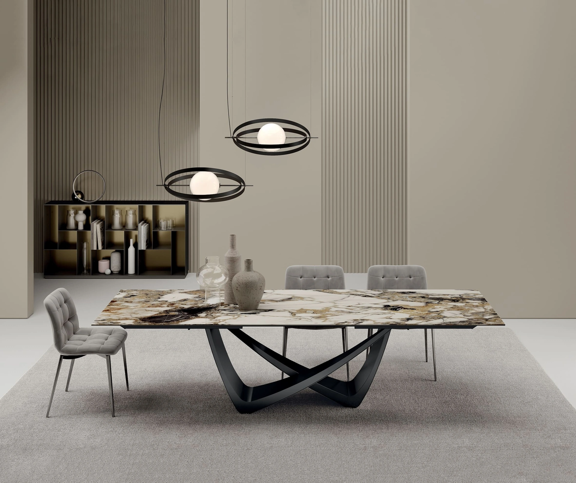 Il noto e rinomato marchio Bontempi, specialista nella realizzazione di arredi in gres, ha scelto per la sua linea un'ampia gamma di materiali, linee e tonalità. Un modello come quello nella fotografia, in abbinamento alle giuste sedie, saprà valorizzare lo stile delle stanze domestiche dedicate in assoluto alla convivialità. Se desideri un tavolo da pranzo di grande design, contattaci e ricevi info e preventivi sul modello visibile in foto. Ideali per dare vita a degli accostamenti unici con sedie e complementi design, i Tavoli allungabili dell'azienda sono soluzioni tra le più esclusive in commercio, ideali per il living e la cucina.