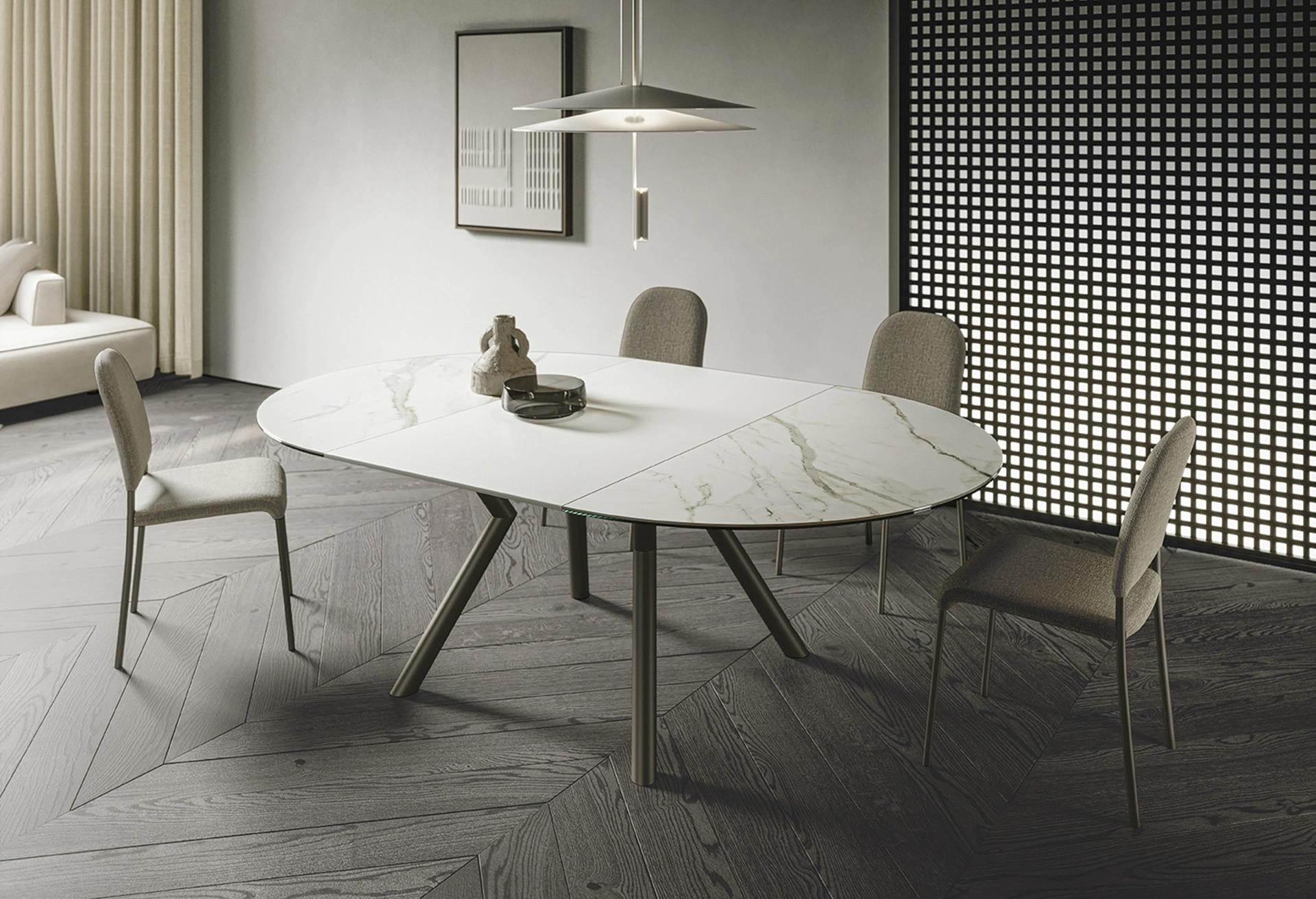 L'esclusivo brand Sedit presenta una ricca gamma di Tavoli da pranzo allungabili, tra cui anche quelli ideali per arricchire ottimamente locali moderni. Se desideri assicurarti un elevato contenuto estetico negli ambienti domestici, ma vuoi anche rendere gli ambienti agibili e confortevoli, allora le nostre soluzioni fanno per te. Un tavolo che si rispetti deve essere in materiali pregiati, in modo che sia resistente e preservi negli anni le doti estetiche che lo contraddistinguono. Tavolo rotondo allungabile Oliver di Sedit: nel nostro punto vendita ti attende una scelta quasi infinita di composizioni arredative di grande design. Uno tra i nostri modelli di Tavoli allungabili sarà in grado di arricchire il tuo progetto d'arredo con funzionalità e stile.