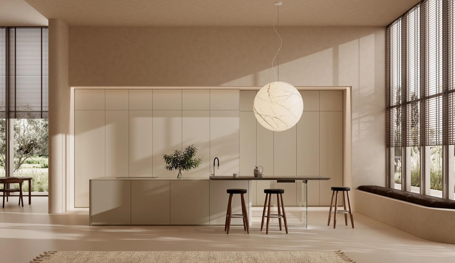 Ernestomeda è il brand specializzato nella costruzione di arredi di tendenza, con cui ogni cliente può sbizzarrirsi in quanto a materiali, forme e palette cromatica. Le Cucine Design in laccato opaco mantengono la bellezza originale negli anni, assicurando un'ottima estetica a completamento delle doti di funzionalità. La consulenza architettonica è uno degli elementi basilari da considerare prima di comprare delle cucine con isola in stile design come quella qui presente.
